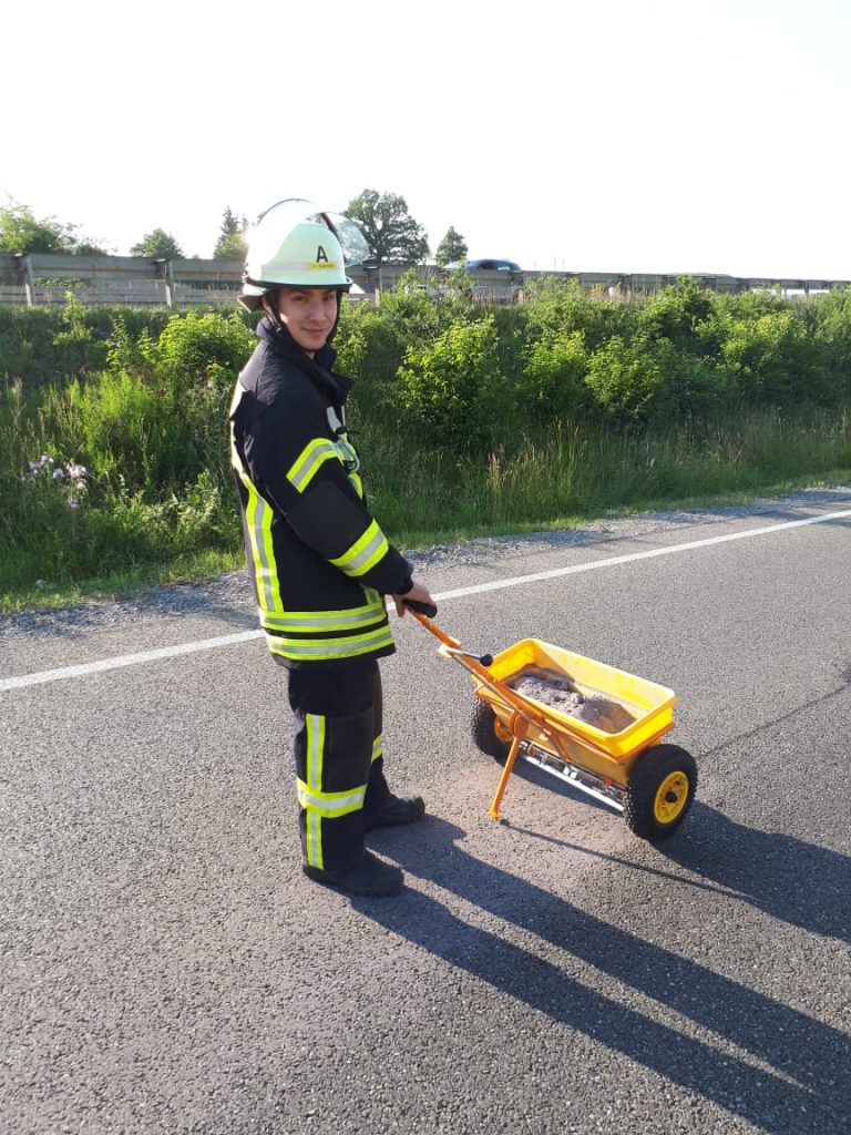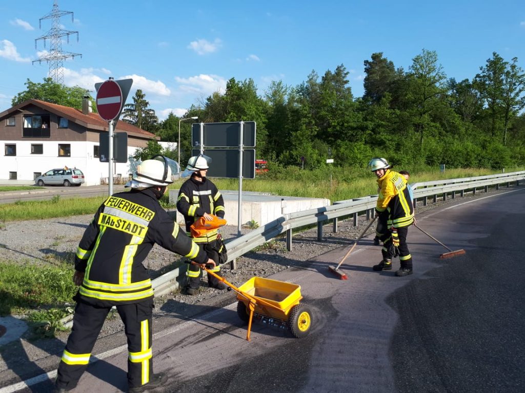 Die Polizei alarmierte die Feuerwehr Magstadt am Montagabend zu einer Ölspur an der Ausfahrt „Magstadt Nord“ der Bundesstraße 464. Die ca. 250m lange Ölspur, die bis in die Felsenstraße führte, wurde mit Ölbindemittel abgestreut. Zusätzlich wurden Hinweisschilder für den Verkehr aufgestellt.