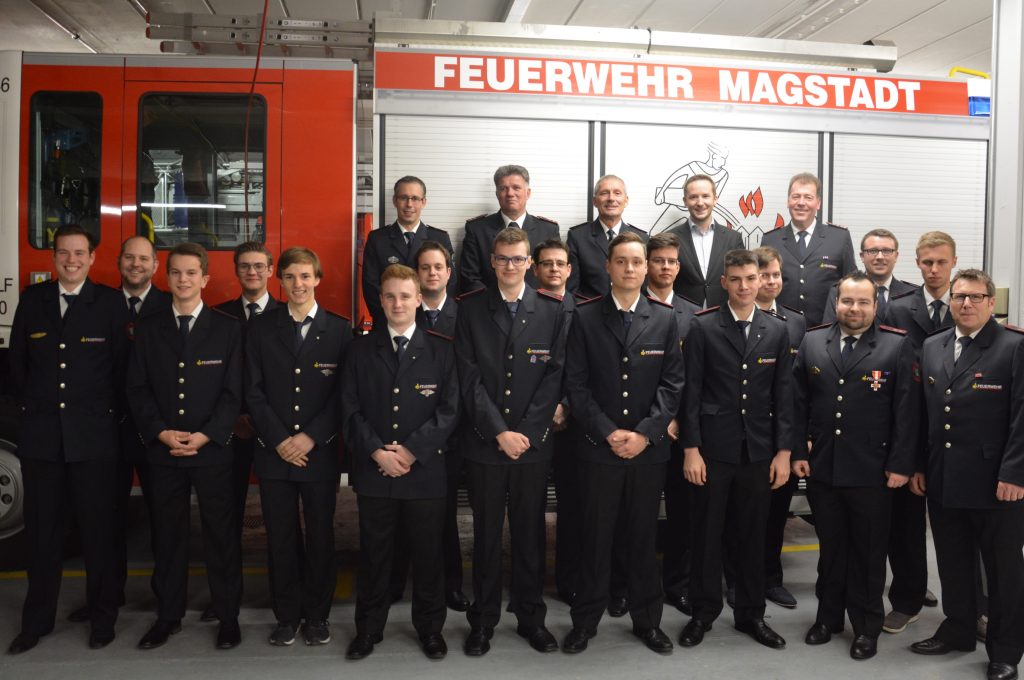 Vom Feuerwehranwärter zum Feuerwehrmann wurden Sebastian Assfalg, Andreas Fechner, Yannick Fischer, Balthasar Heugel, Marius Nass, Carsten Rautenberg und Michael Rentschler befördert. Gabor Frindt, Marcel Hasmüller, Daniel Seiz, Pascal Steegmüller und Jannick Thanner wurden vom Feuerwehrmann zum Oberfeuerwehrmann, Karsten Dörner und Jonas Winter vom Oberfeuerwehrmann zum Hauptfeuerwehrmann befördert. Tim Steegmüller wurde vom Hauptfeuerwehrmann zum Löschmeister und Marco Gund, sowie Thomas Jarmer wurden vom Löschmeister zum Oberlöschmeister befördert. Mit der Übergabe des Feuerwehrhelms, als symbolisches Zeichen zum Eintritt in die Feuerwehr begrüßte Jürgen Stäbler die Neuzugänge Tim Schleißmann, sowie Jan Läpple, der die Feuerwehr als Tagesausrücker unterstützt. Somit besteht die Feuerwehr Magstadt im Jahr 2020 aus 63 Aktiven, 24 Mitgliedern in der Jugendfeuerwehr und 37 Kameraden in der Altersabteilung.
