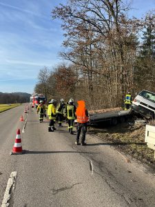 Die Feuerwehr wurde am Freitagvormittag zu einer technischen Hilfeleistung ins Hölzertal alarmiert. Dort geriet ein VW-Bus mit Anhänger von der Straße in den Wald. Die Feuerwehr entfernte mit der Seilwinde den Anhänger, sowie Baumstämme von der Straße und zog den PKW aus dem Wald. Ebenfalls wurde die Einsatzstelle abgesichert, sowie auslaufende Betriebsstoffe aufgenommen.
